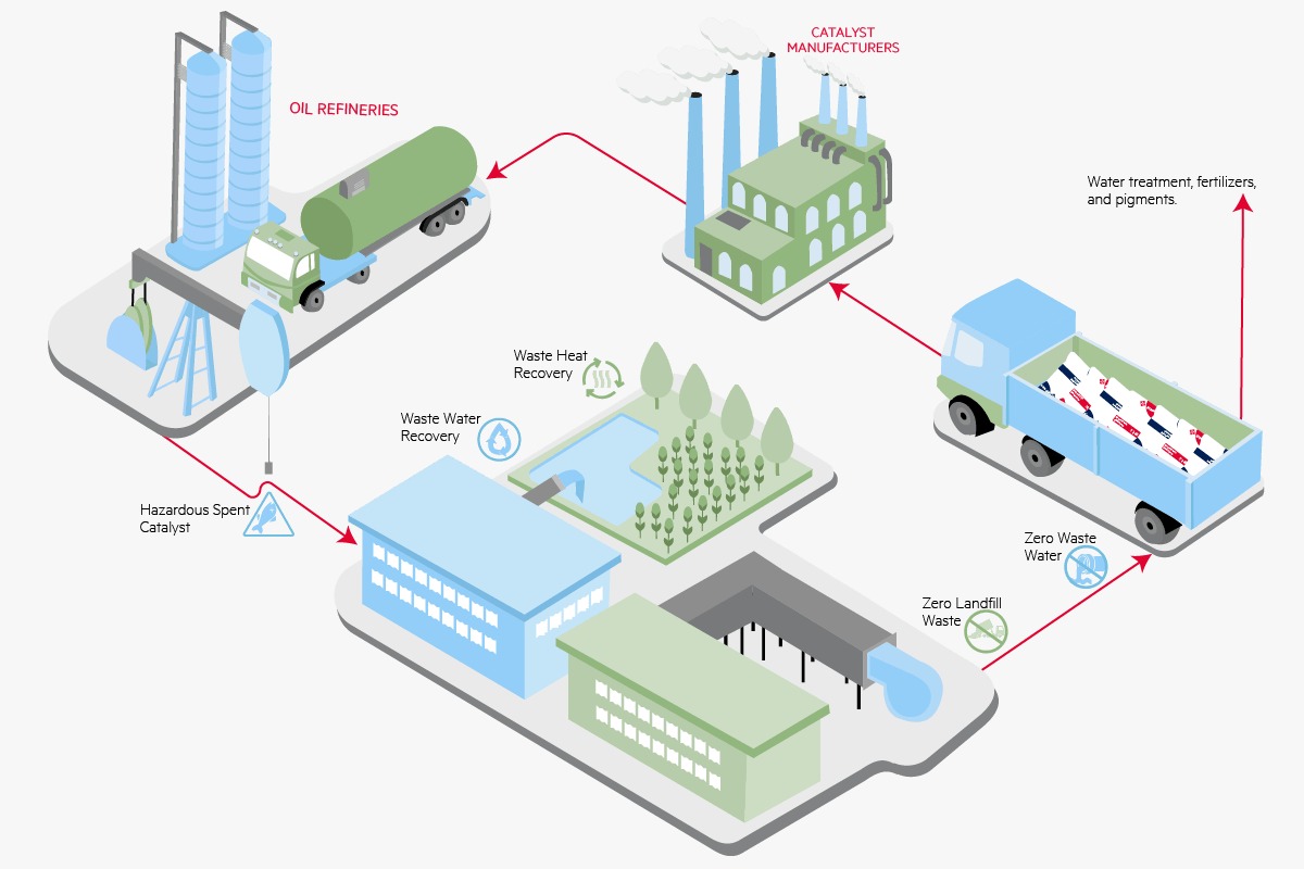 We help refineries and catalyst manufacturers eliminate the end-of-life impact of products and processes by recovering every element in the spent catalyst. The metal compounds can then be distributed back to catalyst manufacturers for re-use in manufacturing, thereby bringing hazardous waste back to the cradle. In India we have been recognized as a circular recycling company, we have been able to contribute majorly to protecting the environment.